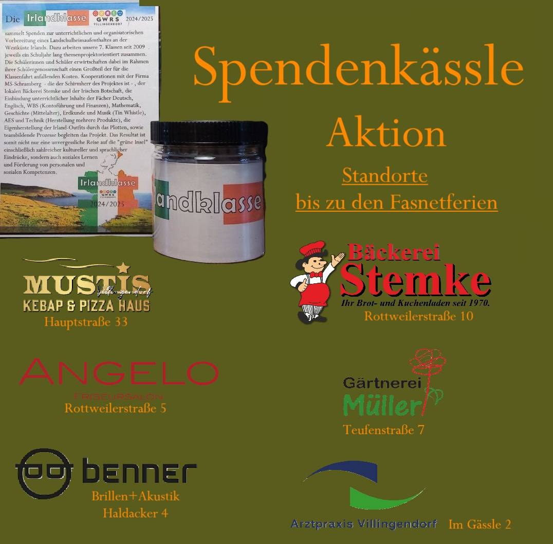 Die Schülerinnen und Schüler der Klassestufe 7, auch Irlandklasse genannt, starten mit der "Spendenkässle-Aktion" eine neue Aktion, um ihrem im Juni stattfindenden Schullandheimaufenthalt in Irland Stück für Stück näher zu kommen.