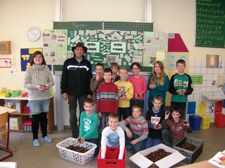 Die Klasse 3 kam auf eine stolze Anzahl von 2718 Kastanien, die Klasse 4b konnte aber den Titel verteidigen und kam auf 2955 gesamelte Kastanien.