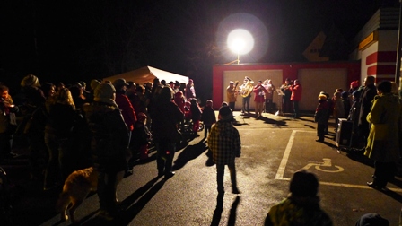 Unter den vielen Menschen war auch unser Schulleitet. Wir führten gute Gespräche an der 14. Adventsfensteröffnung. Da Publikum war begeistert. Am nächsten Tag erfuhren wir, dass wir im Mitteilungsblatt standen. Es war eine tolle Erfahrung für uns!!!
