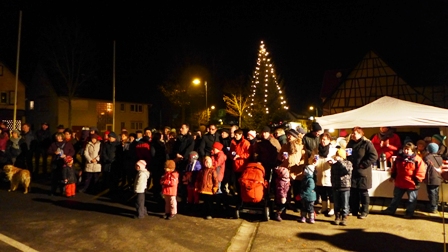 Am 2.12.2013 um 17 Uhr begannen die Vorbereitungen für die Adventsfensteröffnung am Rathaus. Ab 18 Uhr ging es los. Wie führten einen Rap auf und Bürgermeister Karlheinz Bucher eröffnete das Ganze mit einer Rede. Nach unserem Auftritt spielten die Hirschgässles-Musikanten noch Weihnachtslieder. Außerdem wurde der Stern beleuchtet und wir eröffneten unseren Verkaufsstand. Dort verkauften wir Muffins für 50 Cent und Punsch für 1,00 Euro.