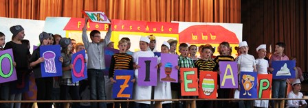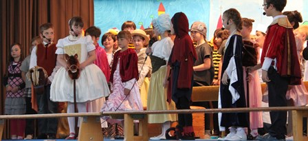 Die dritten und vierten Klassen brachten unter der Leitung der Lehrerinnen Regina Schmidt-Auginski und Lucie Gundel das Kinder-Musical „Till Eulenspiegel“ zur Aufführung.