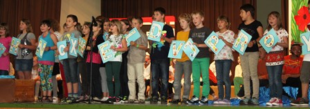 In der Turn- und Festhalle angekommen, wurden die zukünftigen Erstklässler von der Klasse 2a mit einem lustigen Theaterstück empfangen. Auch die vierte Klasse grüßte die „Neuen“ mit dem Lied „Buchstabensuppe“. Eugenia Remisch wählte in ihrer Ansprache an die Kinder und deren Familien als Bild einen Zug. In der ersten Klasse würden dort die Passagiere besonders gut umsorgt, so die frischgebackene Konrektorin.