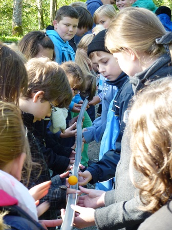 Eingebettet in eine mittelalterliche Rahmenhandlung müssen die Schülerinnen und Schüler nach festen Regeln ein Schwingseil überwinden und ihren Klassenkameraden im Zuge der nächsten Aufgabe einen gehörigen Vertrauensvorschuss zukommen lassen. Kurz darauf sollen dem Grafen in Form eines Tischtennisballs wichtige Nachrichten überbracht werden. Zu diesem Zweck bilden die Kinder aus halbierten Kunststoffrohren eine „freischwebende“ Rampe, die den Weg des Balls vorgibt. Als Antrieb steht nur die Schwerkraft zur Verfügung.