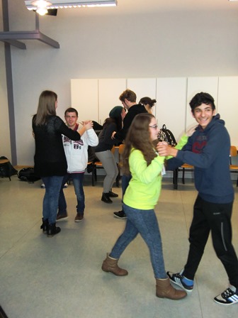 Die Kooperation mit der Tanzschule Herzig aus Rottweil stellt für alle Beteiligten eine große Bereicherung dar. Jochen Hermann führt die knapp 30 Schülerinnen und Schüler durch ein kurzweiliges Alltagstraining mit zahlreichen Aha-Effekten. Der Erkenntnisgewinn unserer Jugendlichen erfolgt dabei über situationsbezogene Gespräche, praktische Übungen und gezielte Interaktionen in der Gruppe.