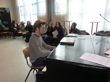 Nach dieser produktiven Arbeitsphase entlässt Hermann die Schüler in eine kurze Pause. Einige der Jugendlichen bleiben aber im Raum und wollen wissen, wie sich eigentlich der Tanzlehrer bisher durchs Leben „geschlagen“ hat. Ob es denn stimme, dass er sich selbst das Klavierspielen beigebracht habe, will ein Mädchen wissen. Hermann dreht sich zum Flügel und lässt seine Hände über die Tasten wirbeln. Angenehme Melodien durchdringen das Gebäude bis in die Aula hinein. Kursteilnehmer und zwei neugierige „Zaungäste“ tauschen anerkennende Blicke aus. Hermann fungiert in diesem Moment als personifizierter Beleg für den Erfolg der angepriesenen Zielorientierung. „Sie können doch auch ganz gut singen“, stellt ein Junge mit aufforderndem Unterton fest. Hermann nickt: „Dafür habe ich aber seit meiner Kindheit hart arbeiten müssen und nehme auch heute noch regelmäßig Gesangstunden.“ Als Kostprobe hören die Schüler eine kurze Audiosequenz. Hermann füllt hier akustisch ohne technische Hilfsmittel mit klassischem Gesang ein ganzes Kirchenschiff aus. Spätestens jetzt wird jedem klar, was mit einem planvollen Vorgehen alles erreichbar ist.