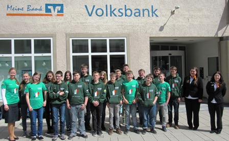 Da wir, die Irlandklasse der GWRS Villingendorf, unsere eigene Schülerfirma (Genossenschaft) gegründet haben, die neben dem Einkauf / Verkauf, der Produktion / Dienstleistung, dem Marketing auch eine Finanzabteilung hat, wollten wir uns Rat bei Experten holen. Deshalb machten wir einen Lerngang zur Volksbank Rottweil eG, denn die Volksbank hat auch die Schirmherrschaft über unser Projekt „Irlandklasse“ übernommen und unterstützt uns bei vielen Aktionen.