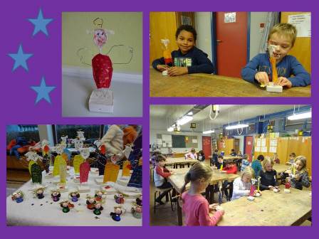Wochenlang war das Klassenzimmer der 2a eine „Weihnachtswerkstatt“. Mit viel Fleiß und Liebe wurden himmlische Engelchen für den Weihnachtsmarkt hergestellt. Auch der Technikraum wurde von den kleinen Heinzelmännchen belagert. Der Verkauf auf dem Weihnachtsmarkt bereitet ihnen große Freude und es wurde wild gerechnet – so viel Spaß kann Mathe machen!