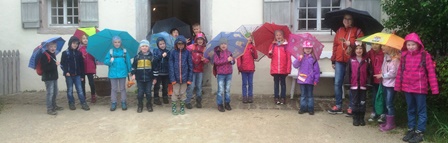 Am 12.05.2016 machte sich die gesamte Grundschule auf ins Freilichtmuseum nach Neuhausen ob Eck. Mit regensicherer Kleidung starteten wir mit unserer Projektleiterin Melanie die Reise in die Vergangenheit, um die „Kindheit auf dem Lande“ zu erforschen. Wir durften Landtiere füttern und streicheln sowie ein Seil aus Hanf herstellen. Das war ganz schön anstrengend. Der Höhepunkt unseres Ausflugs war der Besuch einer alten Schule, die sogar richtig alte Schulbänke hatte. Melanie spielte die strenge Lehrerin und wir die braven Schüler. Bei der Begrüßung mussten wir aufstehen und anschließend unsere Fingernägel zeigen. Zum Glück waren alle sauber - früher gab es für die Schmutzfinken Ärger.