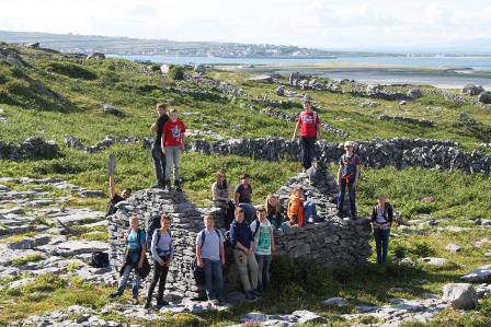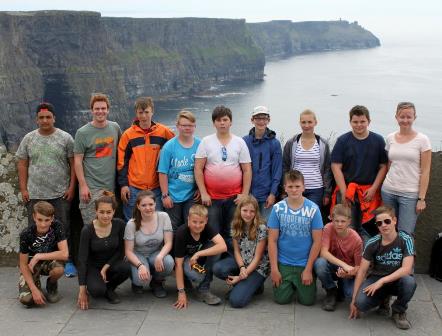 Von dem kleinen Dörfchen Ballyvaughan aus wurde die Westküste erkundet. Unter anderem wagte sich die Irlandklasse in die Tiefen der „Aillwee“ – Höhle bei Ballyvaughan und bestaunte bei einer Greifvogelschau die Fähigkeiten von Eule, Geier und Falke. Mit den Cliffs of Moher standen auch die bekanntesten Steilklippen Irlands auf dem Programm, die bis zu 214 Meter aus dem Atlantik ragen. Während der Wanderung entlang der Klippen vom Hag’s Head bis zum O‘ Briens Tower genossen die Schüler einen herrlichen Ausblick. Einen der Höhepunkte stellten auch die Aran Islands dar. Nach der Fährüberfahrt wurde Inishmore, die größte der drei Inseln, per Fuß und Rad erkundet. Bei diesem 2-tägigen Aufenthalt beeindruckten vor allem die Steinsiedlung Dun Aenghus und die verborgenen Puffing Holes, die nur den Augen abenteuerlustiger Wanderer vorbehalten bleiben.