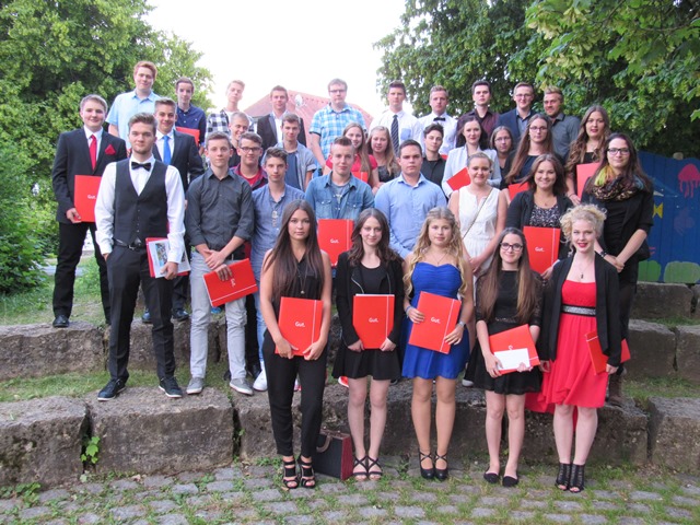 1. Reihe von li. nach re.: Rebekka Becher, Ines Straub, Anastasiya Synelnykova (Landespreis Werkrealschule, Wirtschaftspreis der Kreissparkasse Rottweil, Lob), Vanessa Kläger, Gesina Walser; 2. Reihe von li. nach re.: Manuel Koch, Marc Gellert, Marvin Matten, Nico Jean, Marc Rabmund (Lob), Luisa Molnar, Andrea Schmidt, Janina Bühl; 3. Reihe von li. nach re.: Lars Sierk (Preis), Marc Schüler, Nils Schmid, Marcel Broghammer, Annika Felert (Lob), Esther Zelenika (Preis, Sozialpreis des Schulfördervereins), Jonas Fruh, Loreen Merkle, Erika Felert (Lob), Jennifer Kläger (Lob), Natalie Berner; 4. Reihe von li. nach re.: Lukas Benz (Lob), Lukas Schütz (Sozialpreis des Schulfördervereins), Marvin Staiger (Lob), Julian Boße, Julian Ganter, Patrick Merkel, Lukas Reger, Alex Pabst, Frank Heim, Markus Reger