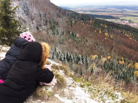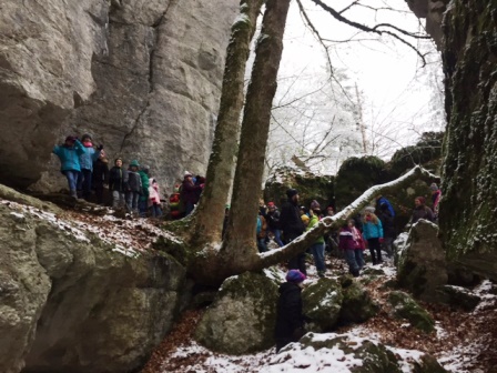 Wir kletterten am ersten Tag bei Schnee und Eis in den „gespaltenen Felsen“, wanderten am zweiten Tag zum „Lochenstein“, von welchem wir sogar die Alpen sehen konnten.