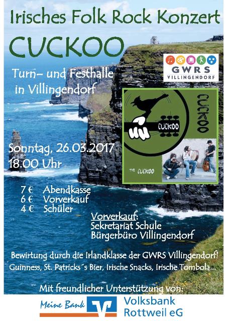 Am Sonntag, dem 26. März 2017 um 18.00 Uhr ist es wieder soweit. In der Villingendorfer Turn- und Festhalle spielt die irische Folk-Rock-Band bereits zum vierten Mal zu Gunsten der Irland-Klasse, einem mehrfach preisgekrönten Unterrichtsprojekt der Grund- und Werkrealschule Villingendorf.