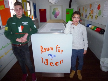 Der "Raum für Ideen" gab dann den Startschuss für das Verkaufsgespräch mit Frau Mathieu für ein Geschicklichkeitsspiel für einen Messestand. So unterstützte uns die Wirtschaftsexpertin in unserem Unternehmergeist und ermutigte uns zu Offenheit und visionärem Denken.