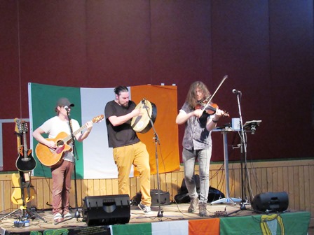 Die dreiköpfige Band aus Cork im Süden der grünen Insel unterhielt das Publikum in der Villingendorfer Turn- und Festhalle bestens. Der Sänger und Gitarrist Eamonn, Matt an Bass und Banjo sowie Chris an der Geige heizten dem bunt gemischten Publikum ordentlich ein und schufen von der ersten Minute ihres Konzerts irisches Flair.