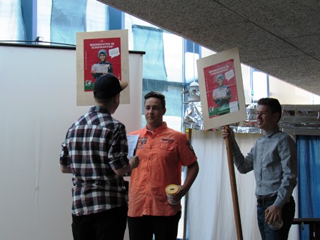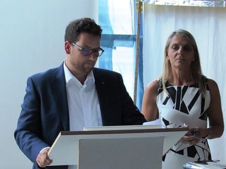 Die Klassenlehrer der 10. Klassen, Sabine Gauß und Jan Hofelich, schlüpften in die Rolle von „couch potatoes“ und stolperten beim Zurückspulen einer alten Video-Kassette über die Highlights der letzten Monate. Die Zehntklässler wiederum stellten das Bewerbungstraining, den Tanzkurs oder die Prüfungssituation in kleinen amüsanten Sketchen, sehr zur Erheiterung des Publikums, dar. „Back to the future“ ging es auch in einem kleinen Film über die Abschlussfahrt an den Gardasee. Schließlich richteten Gauß und Hofelich das Wort an ihre Schützlinge und bemühten das Bild eines Pinguins, der nur in seinem Element zur vollen Entfaltung käme. „Findet euer Wasser und dann springt!“, riefen die Klassenlehrer den „Zehnern“ abschließend zu.