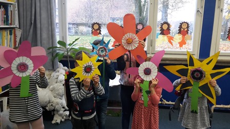 Nachdem mit Papier fleißig das Weben geübt wurde, erprobten die Schüler ihre Fähigkeiten mit den unterschiedlichsten Garnen. Hierbei entstanden schöne Herbstblumen.