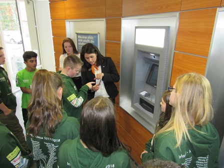 Woran erkennt man eine Phishing-Mail? Was muss man bei einer Überweisung beachten? Wie funktioniert Online-Banking? Was bringt mir eine EC - Karte? Diese und weitere Fragen stellte sich die Finanzabteilung der Schülergenossenschaft Irlandklasse und so freuten sich die Schüler über die Einladung von Christine Mathieu, der Personalleitung der Volksbank Rottweil.