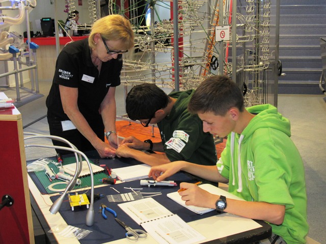 Nach der Führung ging es auf die MS Experimenta. Auf diesem Schiff konnten die Schüler ihr technisches Knowhow zeigen. Sie bauten Vergrößerungsrohre, Neckarflitzer, Buggys, Kritzelmaschinen und verschiedene Musikinstrumente unter fachkundiger Anleitung. Die entstandenen Werke durften alle kostenfrei mit nach Hause genommen werden.