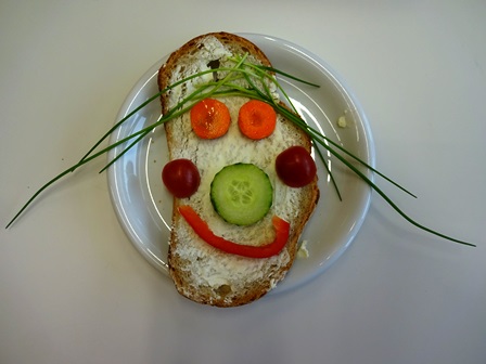 Sie lernen mit Küchengeräten sachgerecht umzugehen, Hygiene einzuhalten und werden jedes Mal etwas Leckeres zubereiten. In der ersten Stunde wurden kunterbunte Brotgesichter zubereitet und genüsslich verspeist.