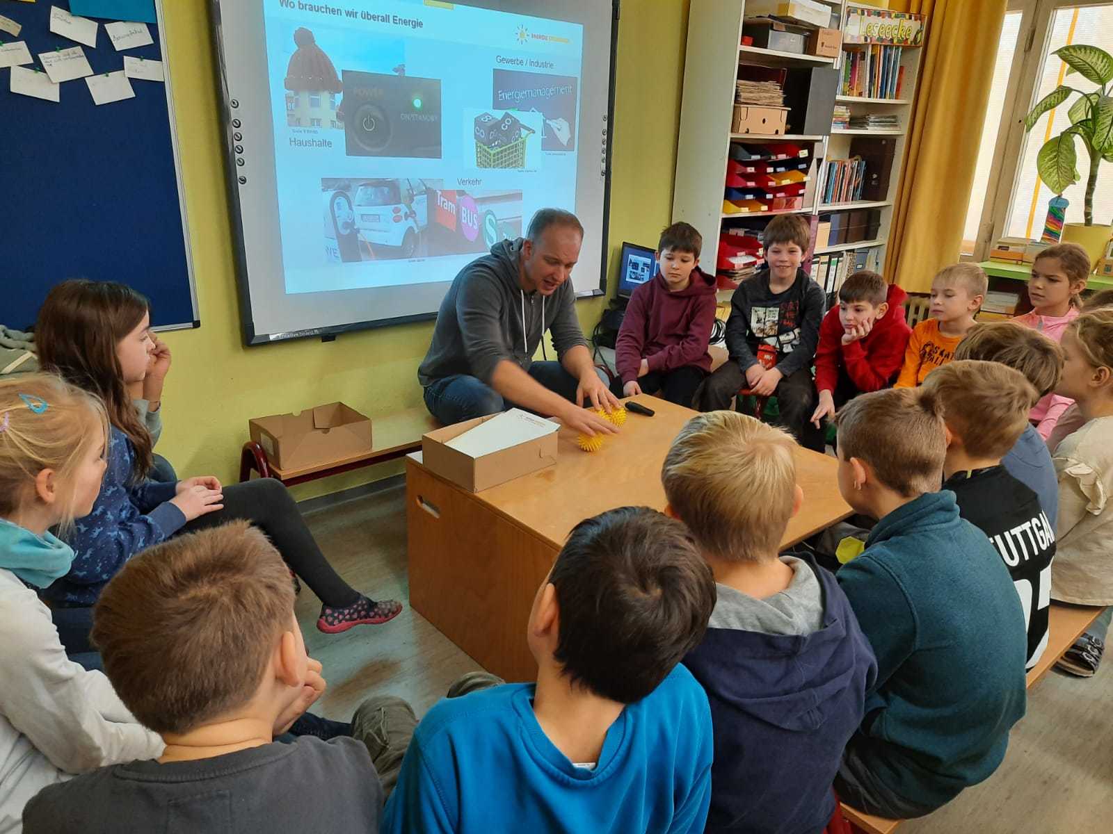 Die Klassenstufe 4 behandelt derzeit im Sachunterricht das Thema Strom und Energie. Als Experte kam dafür Sven Merz von der Energieagentur Rottweil in den Unterricht und hielt einen Vortrag mit kleinen Experimenten zum Thema Energie und Klimaschutz. Neben der Erarbeitung von Stromspartipps ging es auch um den Treibhauseffekt, verschiedene Energieformen und vieles mehr.