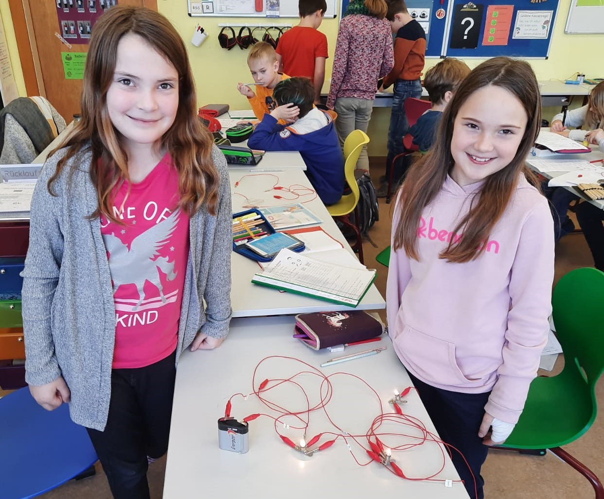 Außerdem beschäftigten sich die Schüler und Schülerinnen im weiteren Unterricht mit dem Unterschied zwischen offenen und geschlossenen Stromkreisen, indem sie eigene Stromkreise mit Schaltern bauten und damit Glühlampen, Summer und Propeller zum Laufen brachten.