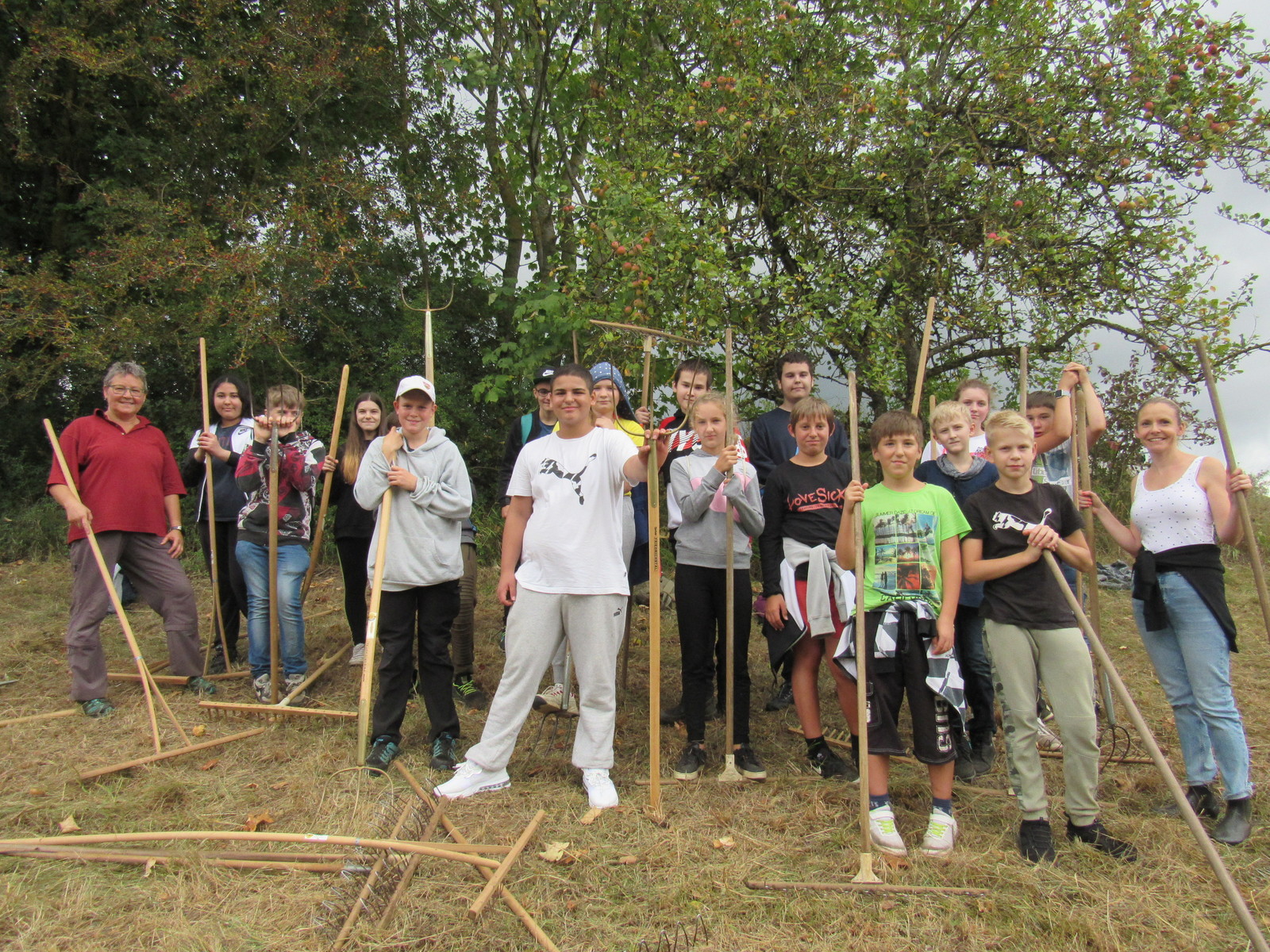 Auch dieses Jahr durfte unsere Irlandklasse (7a und 7b) wieder das Heurechen für die Umweltschutzgruppe Villingendorf übernehmen. Nach einer kurzen Wanderung ins Rauhtal ging es auch gleich los. Jeder schnappte sich einen Rechen.