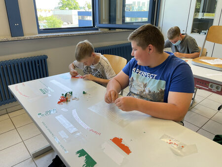 Dazu wurde jede einzelne Farbfolie sorgfältig und mit viel Fleiß entgittert und anschließend mit einer Transferpresse auf die Pullover gedruckt. Dies bereitete den Schülerinnen und Schülern viel Freude und macht noch mehr Lust auf die Irlandfahrt, die hoffentlich in der zweiten Hälfte des nächsten Schuljahres nachgeholt werden darf. Die Siebtklässler wären für die Reise nach Irland auf jeden Fall startklar.