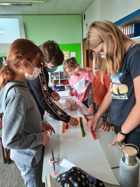 Strichlisten, Häufigkeitstabellen und verschiedene Diagramme - die Schülerinnen und Schüler der fünften Klassen befassten sich im Mathematikunterricht mit Daten. Mithilfe von Gummibärchen wurden handlungsorientiert Diagramme erstellt, um die Anteile der Farben in verschiedenen Packungen zu ermitteln.