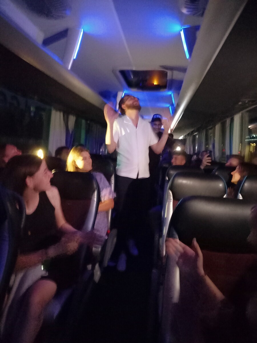 Rückfahrt ins Hotel in den Berliner Stadtteil Wedding. Die Stimmung im Bus ist grandios, die Party geht hier einfach weiter! Ein toller Abend!