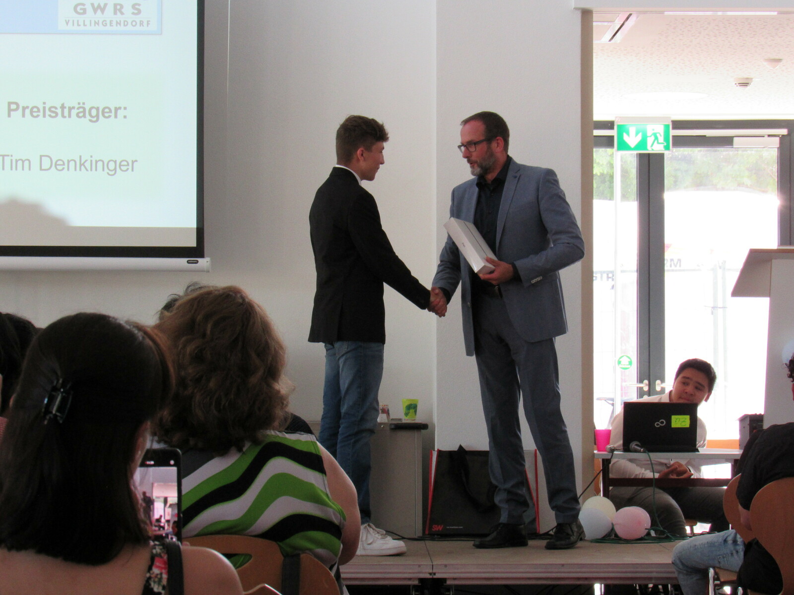 2022 07 14 Entlassfeier 32022 07 14 WirtschaftspreisNicht nur gleich sechs Landespreise Werkrealschule, die vergangene Woche von Kultusministerin Theresa Schopper in Stuttgart überreicht wurden, zeugen vom hohen Leistungsstand des Jahrgangs. Stoycho Kutinov erhielt den Wirtschaftspreis der Kreissparkasse Rottweil, während Anna Marie Benz aus den Händen der Fördervereinsvorsitzenden Simone Drossel den Sozialpreis für besonderes soziales Engagement erhielt.