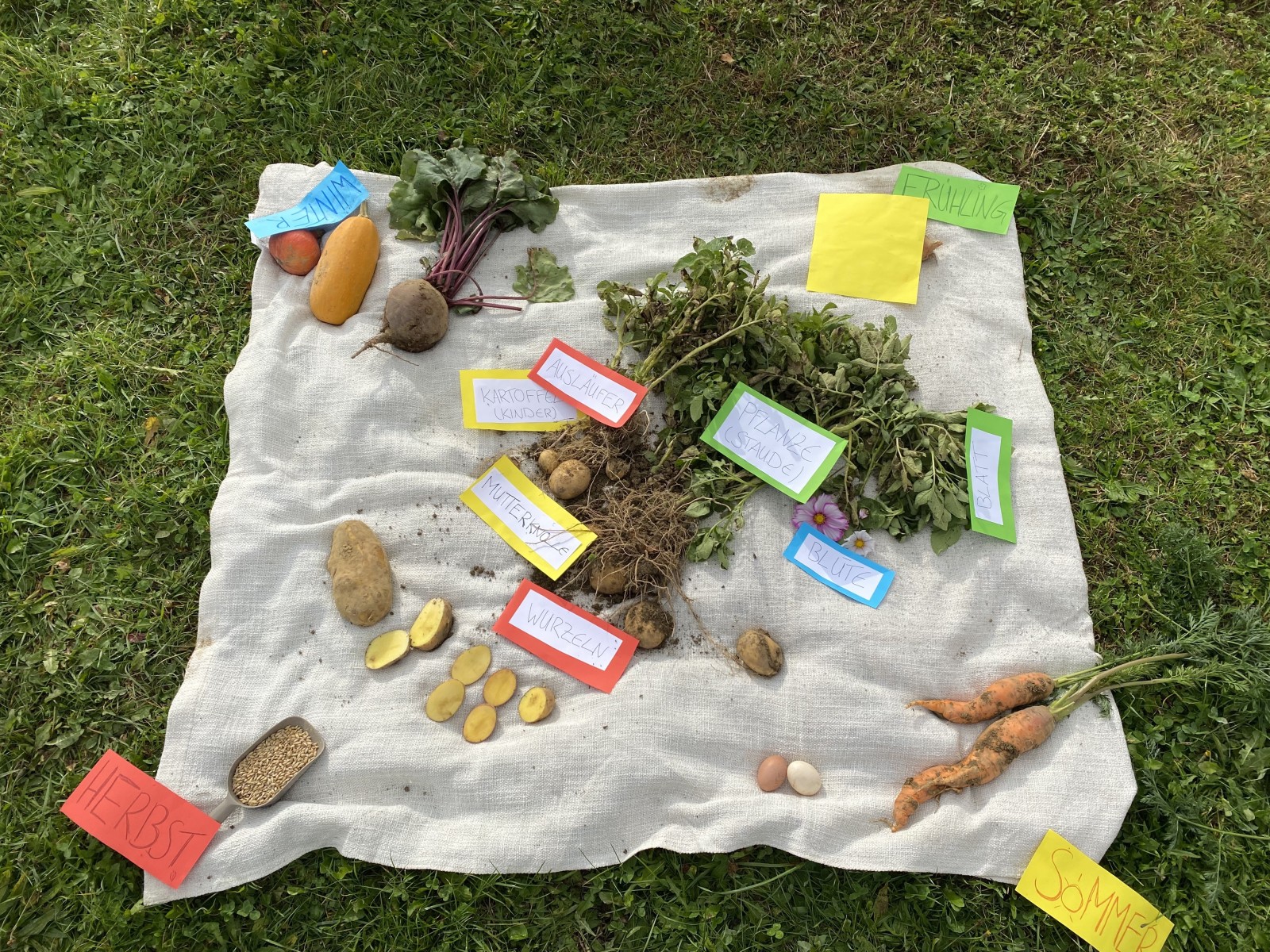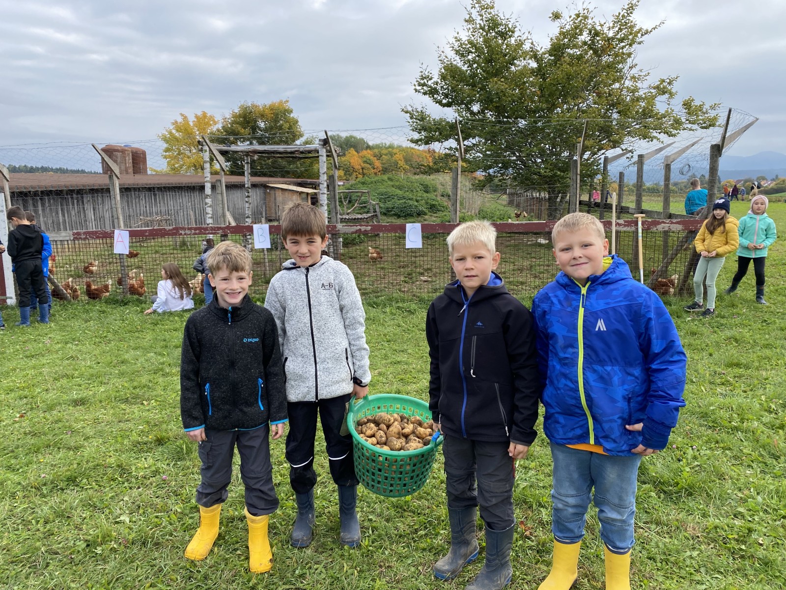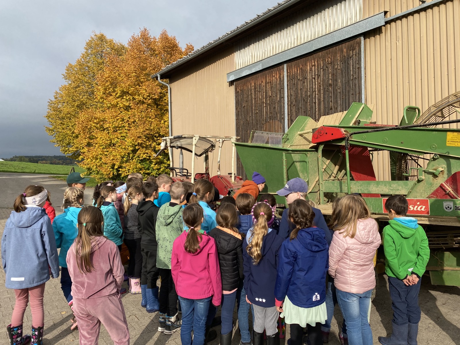 Die Klassenstufe 3 machte sich im Rahmen des aktuellen Sachunterrichtsthemas „Die Kartoffel“ auf den Weg zum Glasers Hof nach Zimmern ob Rottweil. Auf dem Hof angekommen wurden wir liebevoll von der Familie Michel sowie ihren Hühnern und Ziegen empfangen. Zunächst lernten die Schülerinnen und Schüler die angebauten Produkte kennen und konnten auch schon ihr bereits erworbenes Wissen zur Kartoffel an einer realen Kartoffelpflanze anwenden und zeigen. Nachdem ein Kartoffelroder und eine Sortiermaschine genauer unter die Lupe genommen wurden, durften die Kinder hautnah bei der Ernte dabei sein. Mit Gummistiefeln und Spaten ausgerüstet, ging es für die Schülerinnen und Schüler auf das Kartoffelfeld. Mit etwas Hilfe von Familie Michel konnten hier viele Kartoffeln geerntet werden. Auch bei der Karottenernte durften die Schülerinnen und Schüler hautnah dabei sein und mit viel Freude teilweise riesige Karotten aus der Erde ziehen. Mit Karotten im Rucksack und zwei Säcken Kartoffeln in der Hand machten sich die Kinder schließlich nach einem spannenden und erlebnisreichen Vormittag auf den Rückweg zur Schule.