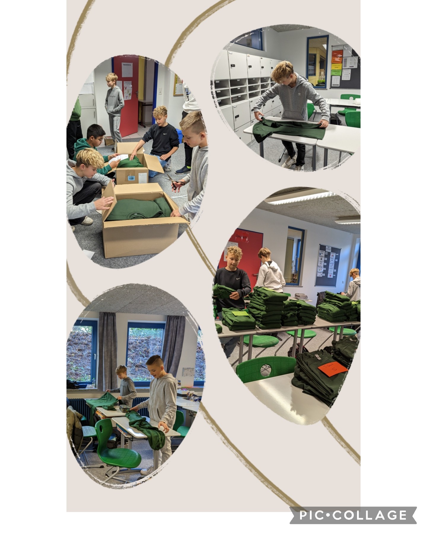Voller Stolz und mit glücklichen Gesichtern wurden die angelieferten Irlandoutfits von den Siebtklässlern ausgepackt, gezählt, zusammengelegt und bereits teilweise beplottet. In den nächsten Wochen werden die Outfits im Rahmen des Unterrichts fertig gestellt, sodass die Siebtklässler diese hoffentlich pünktlich für die Verkaufsaktionen anziehen können.