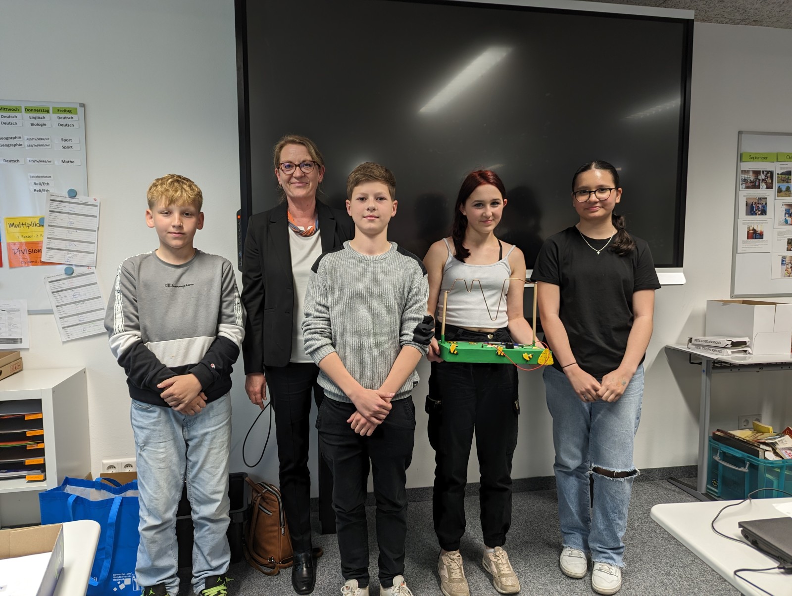 Im Rahmen des Technikunterrichts entwickelten die Schülerinnen und Schüler unter Leitung der Techniklehrerin Monika Leibold zunächst viele Ideen für die Umsetzung des Auftrags, bevor sie diese dann auch in die Tat umsetzten.