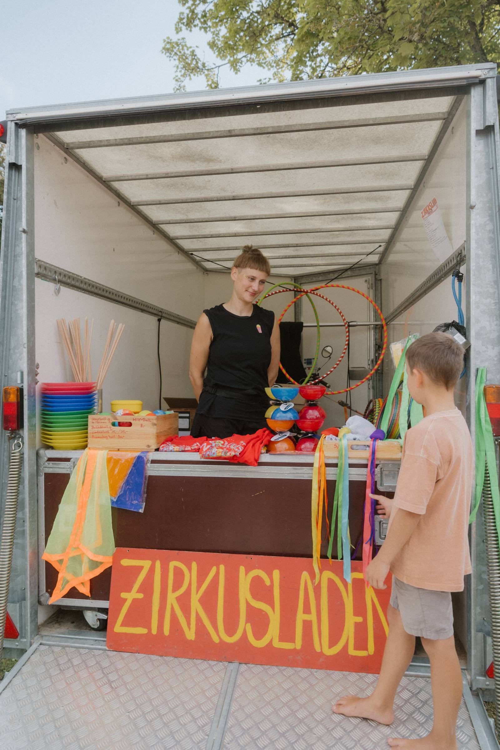 Auch für das leibliche Wohl war an diesem Freitagnachmittag bestens gesorgt. Förderverein und Elternbeirat zeigten wieder einmal ihr herausragendes Engagement und vervollständigten das kulinarische Angebot der Klassen 7 bis 9, sodass es nicht nur im, sondern auch um das Zirkuszelt herum alles gab, was ein richtiger Zirkus so zu bieten hat. Gekühlte Getränke, eine Kuchentheke mit Kaffee und Eis, Slush-Eis, Popcorn, Crêpes und Waffeln durften ebenso wenig fehlen, wie Grillwurst und Pommes. Der ortsansässige Albverein wartete mit seinem selbstgebauten Weinwagen auf und rundete das Gesamtbild ab.