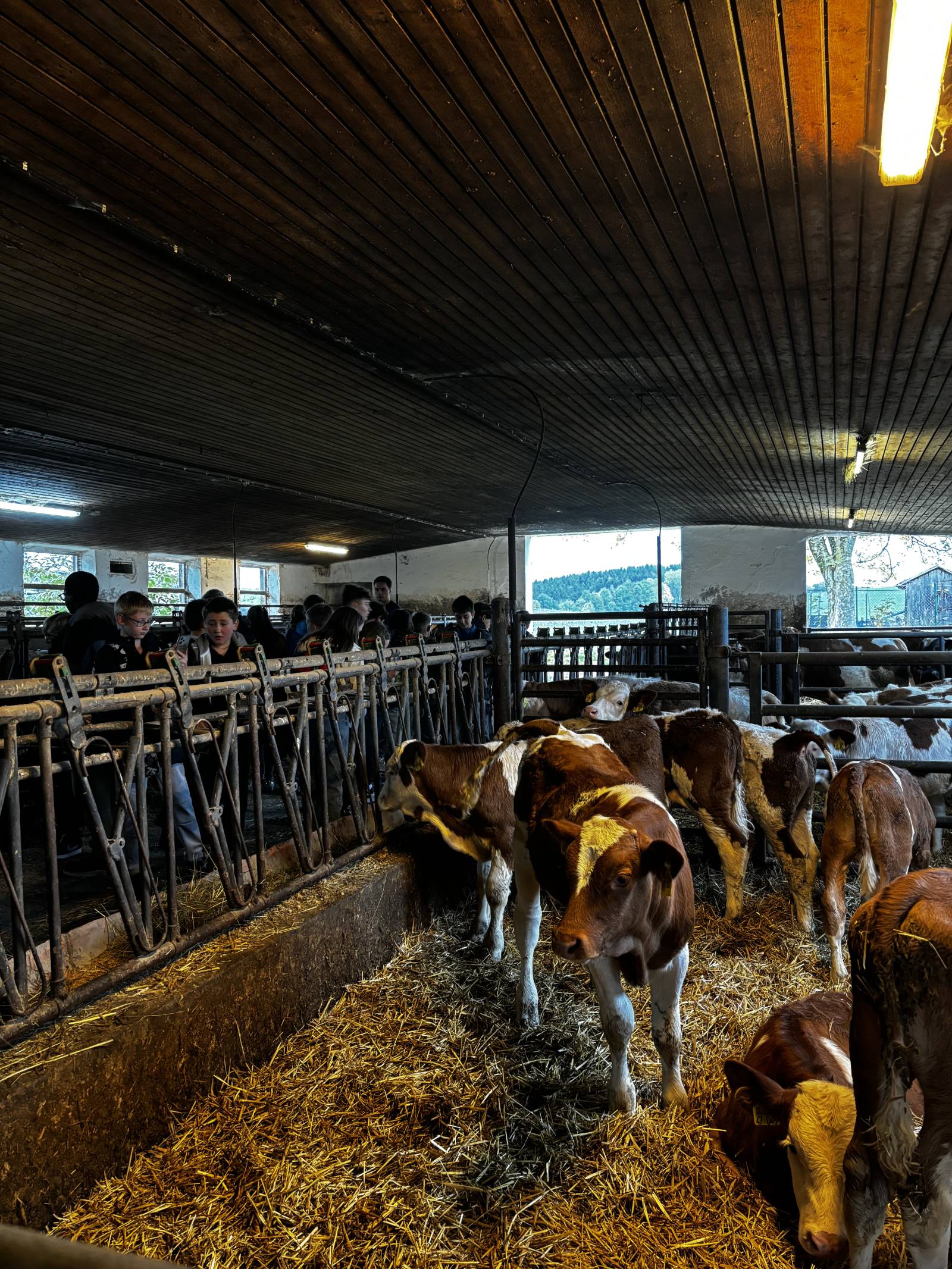 Kurz vor den Herbstferien machten sich die beiden Klassen auf den Weg zum am Ortsrand gelegenen Hof. Dort durfte dann zunächst das aus 60 Bullen bestehende Fleckvieh begutachtet und gestreichelt werden. Danach folgte ein Besuch bei den rund 600 Schweinen sowie den Hühnern, über die es ebenfalls zahlreiche Informationen gab. Besonders beeindruckend waren die großen Fahrzeuge, die auf dem Hof vorzufinden waren und in welche die Schülerinnen und Schüler auch reinsitzen durften.