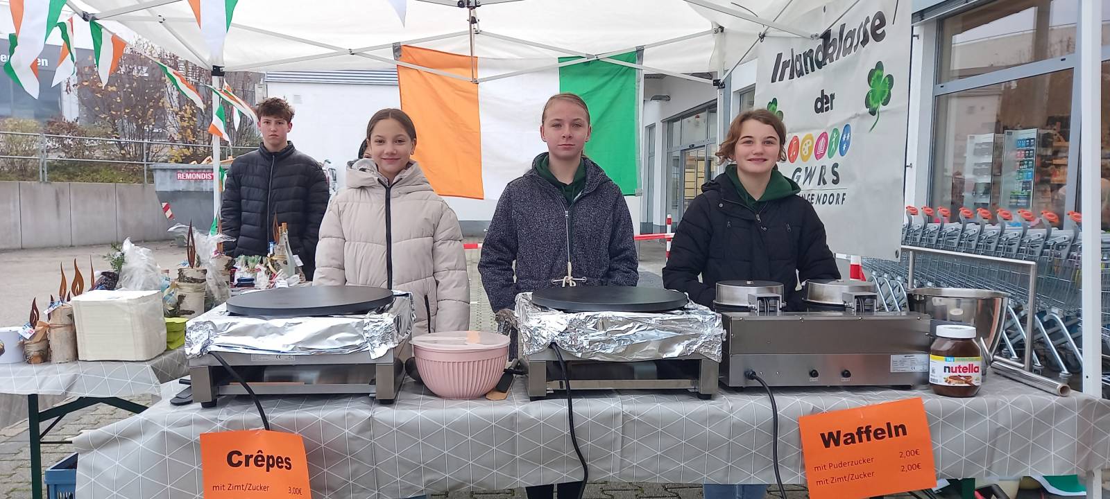 Am Samstag, den 16.11.24 startete die Irlandklasse bei bestem Herbstwetter in die vorweihnachtliche Zeit. Stolz präsentierten die Schülerinnen und Schüler der 7. Klassenstufe ihre selbstgemachten Geschenke. Waffeln durften natürlich auch nicht fehlen und sorgten auch bei den kleinsten Besuchern für leuchtende Augen.