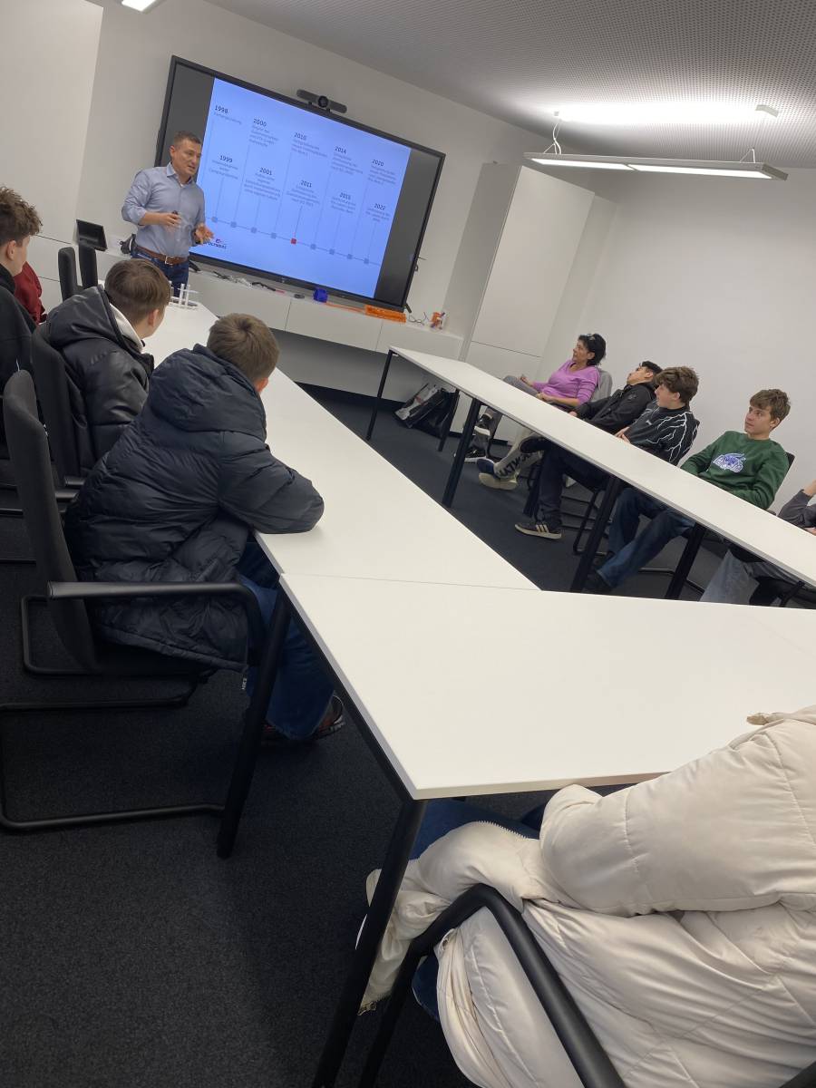 Zum Abschluss wurden die Achtklässlerinnen und Achtklässler mit Butterbrezeln und Goodybags überrascht, was bei allen sehr gut ankam. Insgesamt war der Besuch bei Ria Polymers eine spannende und besondere Erfahrung, die die Teilnehmenden begeisterte und ihnen einen lehrreichen Blick hinter die Kulissen eines modernen Unternehmens ermöglichte.