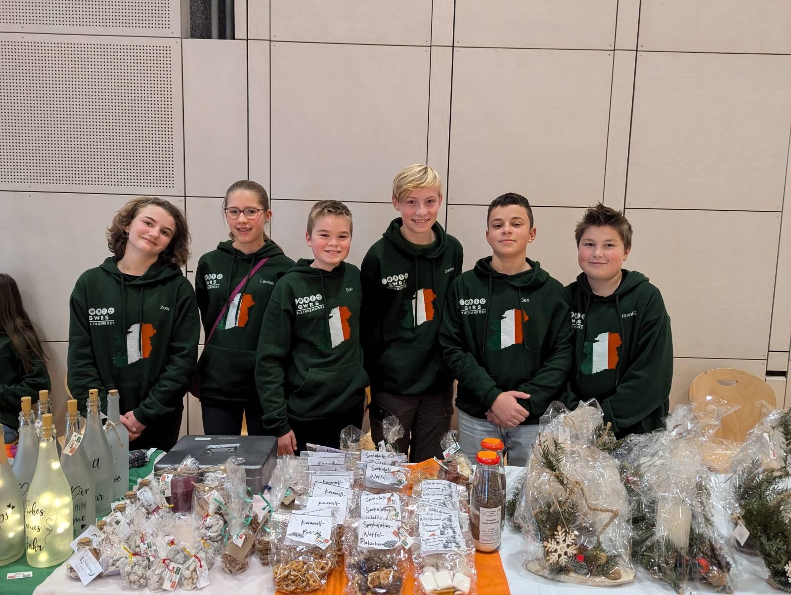Zusätzlich bot ein Verkaufsstand der Irlandklasse die Gelegenheit, selbstgemachte Produkte wie Marmelade, Weihnachtsplätzchen und liebevoll gestaltete Dekoration zu erwerben. Die Seniorinnen und Senioren nutzen die Möglichkeit, die kreativen Werke zu bewundern und gleichzeitig das Irlandprojekt der Klasse zu unterstützen.