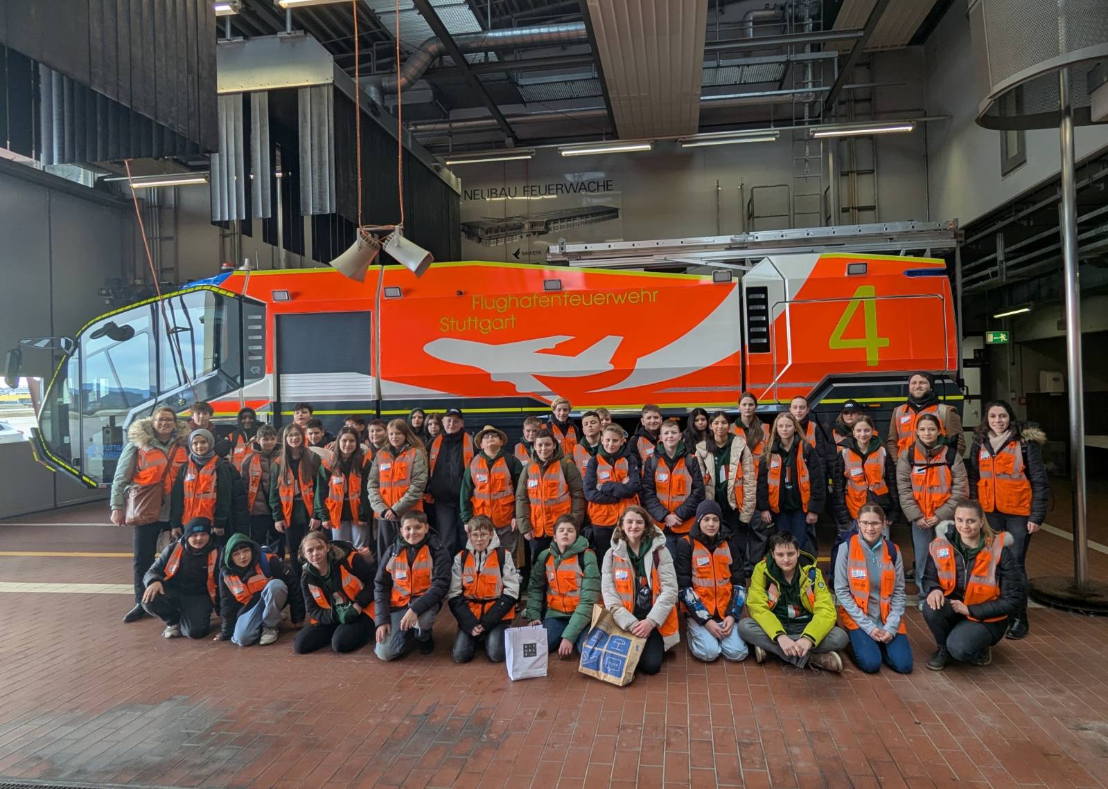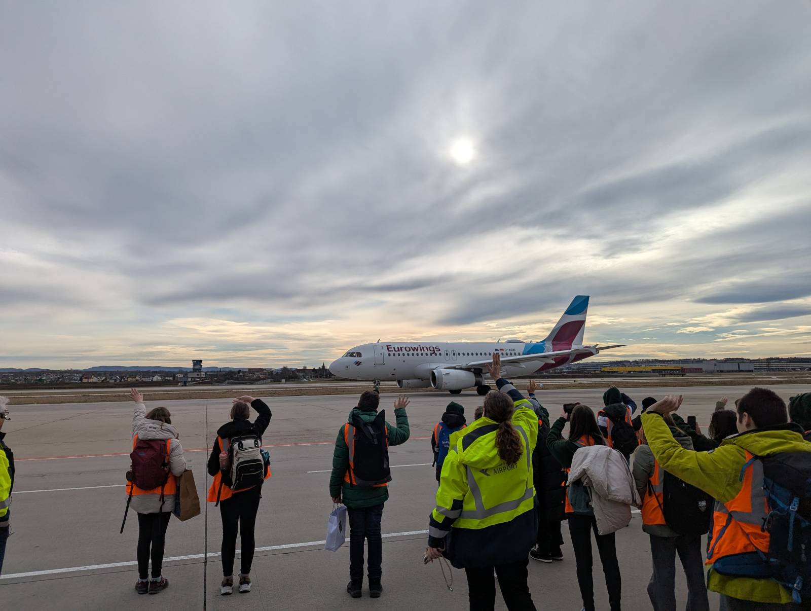 Am nächsten Morgen stand ein weiteres Highlight auf dem Programm: die Flughafenführung am Stuttgarter Flughafen. Nach dem Frühstück ging es gemeinsam in Richtung Flughafen, wo die Schülerinnen und Schüler einen spannenden Blick hinter die Kulissen werfen konnten. Besonders beeindruckend war das Passieren der Sicherheitskontrolle und die Einblicke in Bereiche, die sonst für die Öffentlichkeit verborgen bleiben.