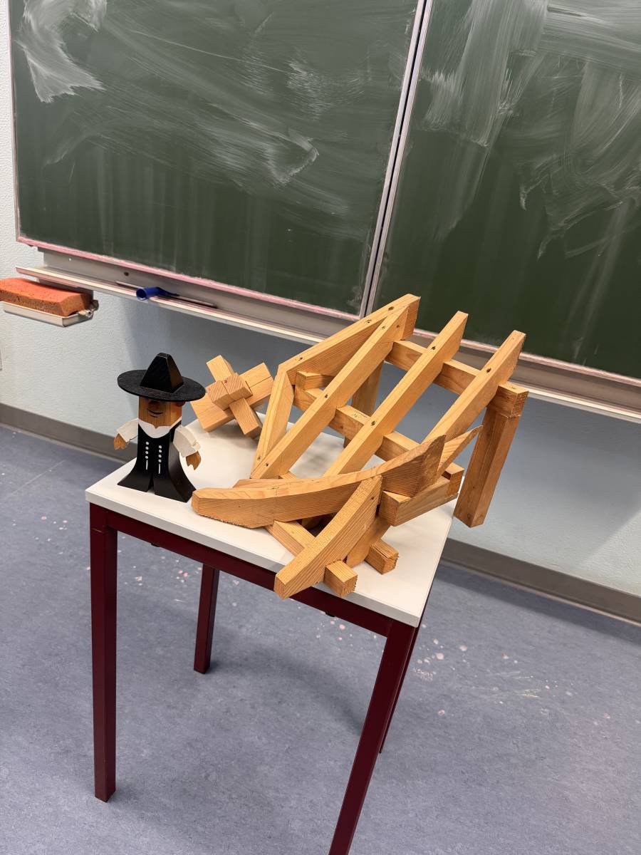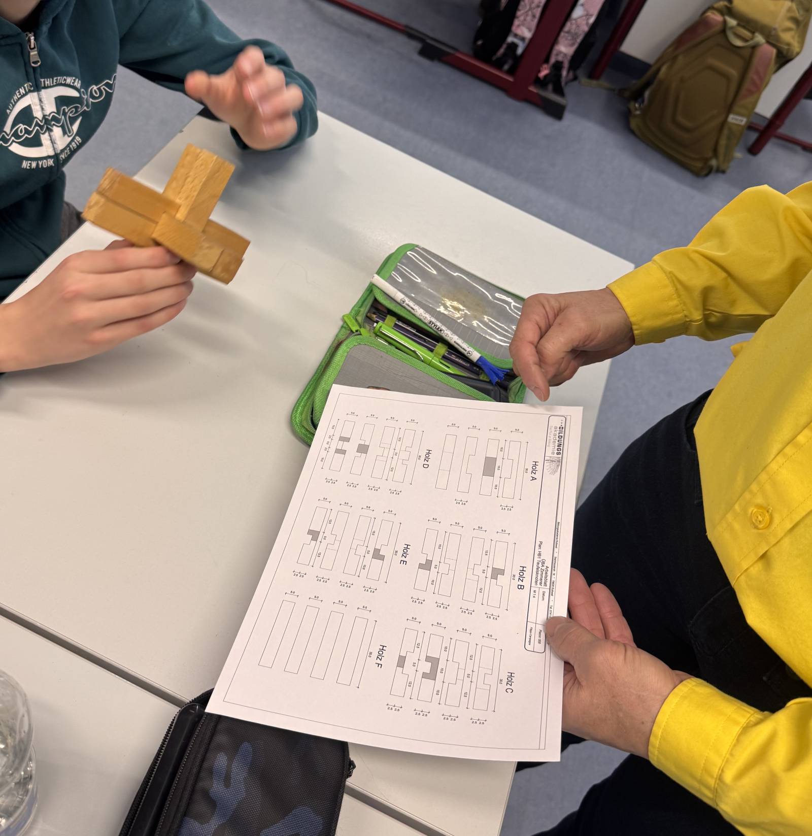 Großes Interesse weckte auch der mitgebrachte „Teufelsknoten“, an dem die Schülerinnen und Schüler sich ausprobieren durften – ohne Plan war der gar nicht so einfach auseinander- bzw. wiederzusammenzubauen.