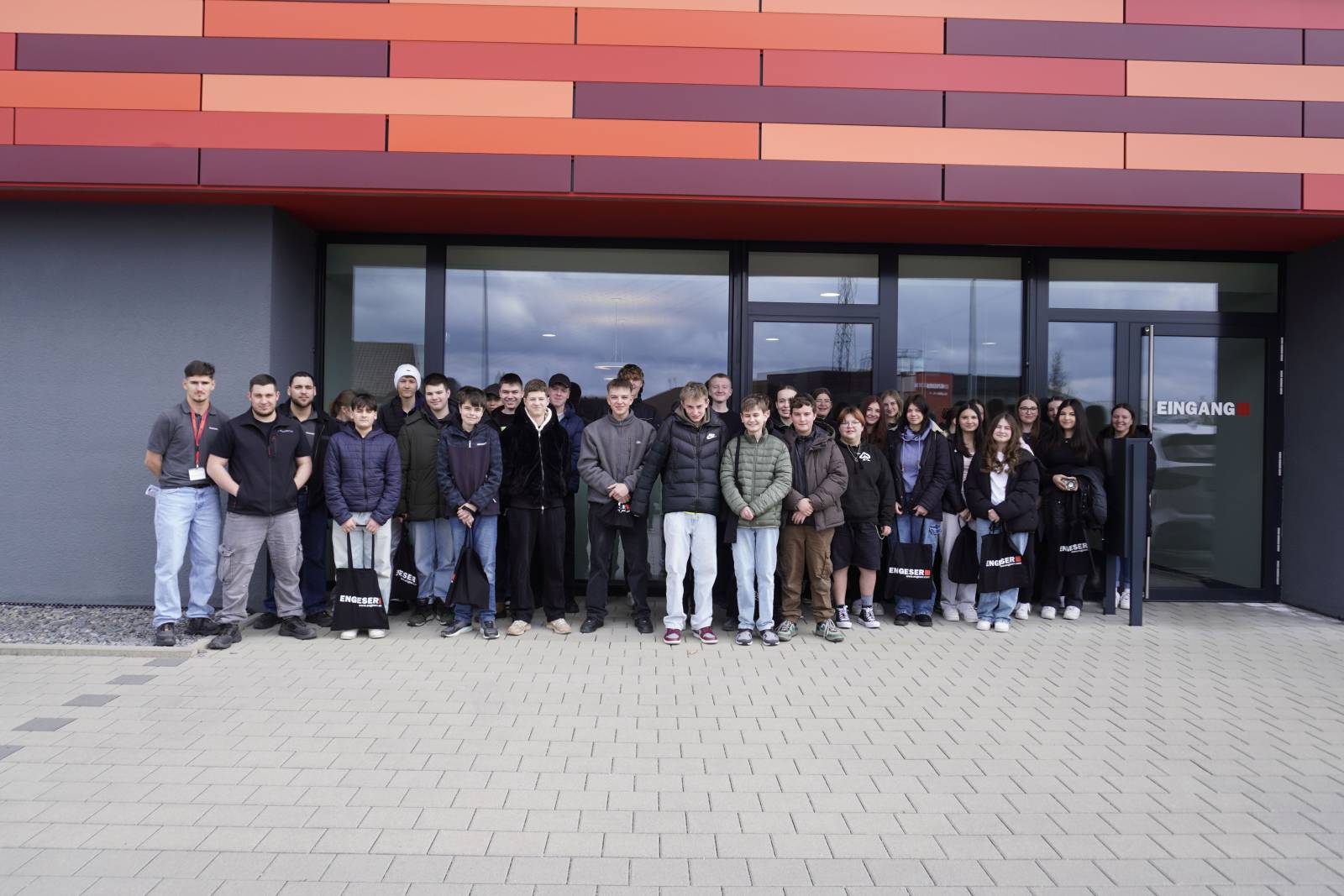 Vor einer Woche besuchten Ausbildungsbotschafter der Engeser GmbH die Schülerinnen und Schüler der Klassenstufe 9. Dabei wurde zu Praxisworkshops in Waldmössingen eingeladen. Interessierte Jugendliche konnten sich einem der vier Berufsbilder Mechatroniker, Maschinen- und Anlagenführer, Lagerlogistik sowie Industriekaufleute zuordnen. Mit drei Kleinbussen und zwei Pkw fuhren nun über 30 Schülerinnen und Schüler zur Engeser GmbH, um sich diese Möglichkeiten für unmittelbar-direkte Eindrücke und Erfahrungen nicht entgehen zu lassen.