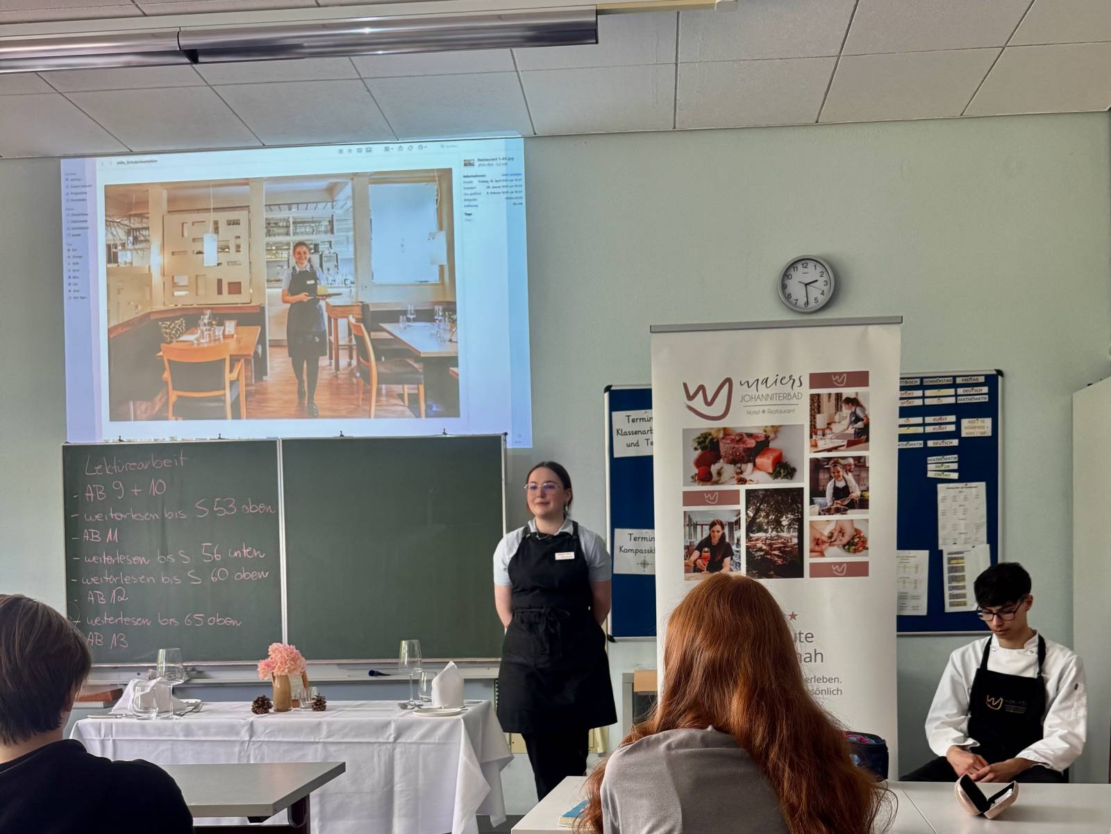 Am 13. Mai stellte Herr Maier persönlich den beiden achten Klassen die Ausbildungsmöglichkeiten im Hotel Johanniterbad vor.