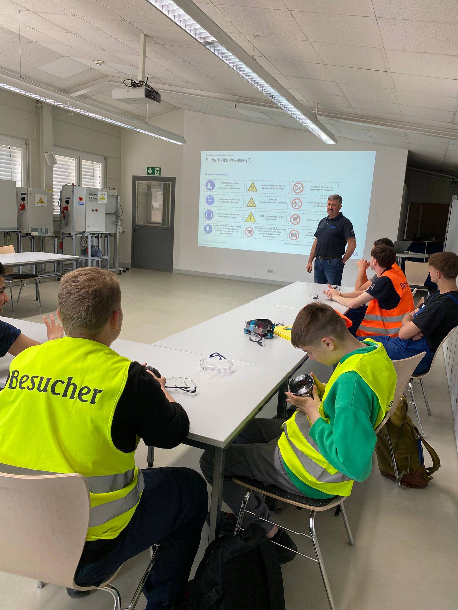 Im Anschluss an diesen Überblick wurden die Schüler in Kleingruppen eingeteilt und von drei aktuellen Auszubildenden durch das Werk geführt. Dabei erhielten sie die Gelegenheit, die Produktionsabläufe sowie die Arbeitsstätte der Azubis zu sehen.