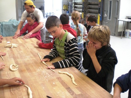 Am Mittwoch, dem 23. September 09 waren wir in der Bäckerei Geiger. Als wir durch den Hintereingang die Backstube betraten, waren wir verblüfft, wie riesig die Halle war.