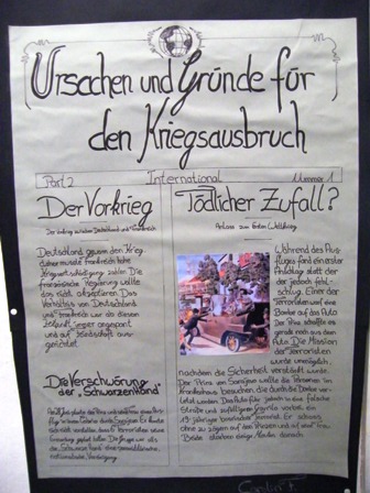 Geschrieben am 29. November 2009. Projekt Wandzeitung Erster Weltkrieg Klasse 9 beschäftigte sich mit der "Urkatastrophe" des 20. Jahrhunderts. Heraus kam u.a. eine informative Wandzeitung