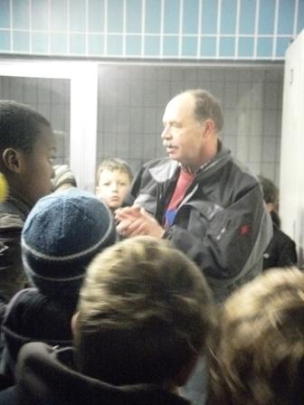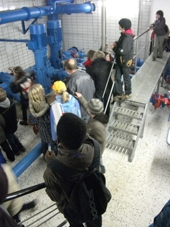 Das Thema Kläranlage hatten sie schon im Unterricht durchgenommen. Zuerst zeigte Herr Garcia den Kindern das Wasser, wie es durch Abwasserkanäle in den Zulauf geht. Wenn das Wasser zuviel wird geht der Zulaufschieber zu und das Wasser läuft in das Überlaufbecken, erklärte Herr Garcia den Schülern. Danach geht das Wasser am Rechen vorbei und nimmt den groben Schmutz weg. Weiterhin erzählte er den Kindern noch was im Sandfang, Vorklärbecken, Belebungsbecken und im Nachklärbecken passiert Anschließen durften die Schüler noch Fragen stellen.