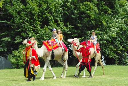 Nach dem berechtigten Applaus für die jungen Künstler vermutete wohl so mancher Festbesucher beim Verlassen der Halle eine Fata Morgana: Zwei Kamele ermöglichten Groß und Klein einen Ritt auf dem Wüstenschiff.