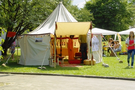 Der Pausenhof hatte sich in der Zwischenzeit zu einer kleinen Beduinenstadt verwandelt. Der örtliche Gewerbeverein „Wir in Villingendorf (WiV)“ verloste am Glücksrad so manchen attraktiven Preis, Mustafa Keskinsoy von der Türkisch Islamischen Gemeinde Rottweil suchte das Gespräch über den Islam und die Buchhandlung Klein stellte Märchen aus 1001 Nacht und weitere orientalische Literatur vor.