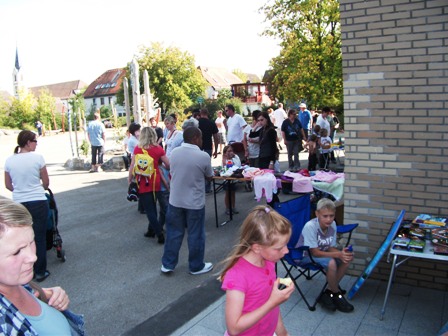 Petrus meinte es offensichtlich gut mit dem diesjährigen Apfel-Kartoffel-Zwiebel-Fest und zahlreiche Besucher verweilten auf dem nicht nur kulinarisch gut aufgestellten Fest. Die Schule konnte sich dieses Mal mit einem schönen Auftritt der Bläserklasse unter Leitung von Jutta Waldvogel sowie einem Kinderflohmarkt auf dem Schulhof beteiligen.