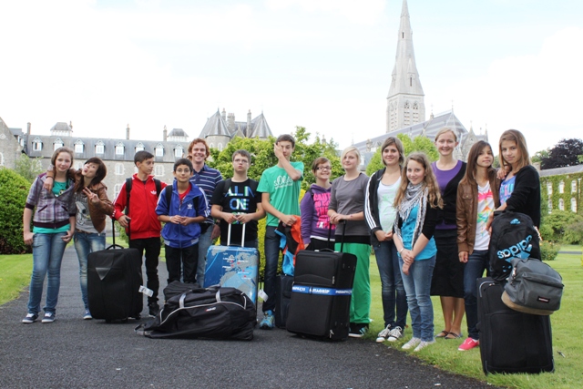 Am Sonntag, den 15. Juli 2012, sind wir aus dem 10-tägigen Landschulheimaufenthalt wieder glücklich und zufrieden in Rottweil angekommen. Wir haben eine wunderschöne Zeit zusammen verbracht. Jeden Tag gab es auf der grünen Insel etwas Neues zu entdecken. Wir waren in den Aillwee Caves, in denen der letzte Braunbär Irlands gelebt haben soll. An diesem Tag sahen wir auch eine Greifvogelshow und durften einige Greifvögel selber halten. Wir stiegen auf den Berg, der vor unseren Häusern lag und freuten uns über die herrliche Aussicht. Auch die berühmten Cliffs of Moher besuchten wir - und staunten darüber, wie hoch sie sind. Wir fuhren mit einer Fähre zu den Aran Islands und verbrachten dort eine Nacht, um so viel wie möglich von dieser Insel sehen zu können. Dort wanderten wir zum höchsten Punkt der Insel, erkundeten die Klippen an der Westküste der Insel, die in Richtung Amerika zeigen, und fanden die verborgenen Puffing Holes, die besonders bei Flut beeindruckend sind. In Galway waren wir shoppen und besuchten einen Rummel. An einem Sandstrand, der nur 5 km von unseren gemieteten Häusern entfernt war, trauten sich einige Mutige in das kühle Nass. Besonders aufregend waren auch die zwei Übernachtungen im Castle von Maynooth, das dem Schloss aus „Harry Potter“ sehr ähnlich sieht. Bei der letzten Übernachtung bekamen wir ohne Aufpreis super ausgestattete Zimmer auf 5-Sterne-Niveau, die normalerweise nur für die Priester, die in einem Teil des Castles ausgebildet werden, zur Verfügung stehen.